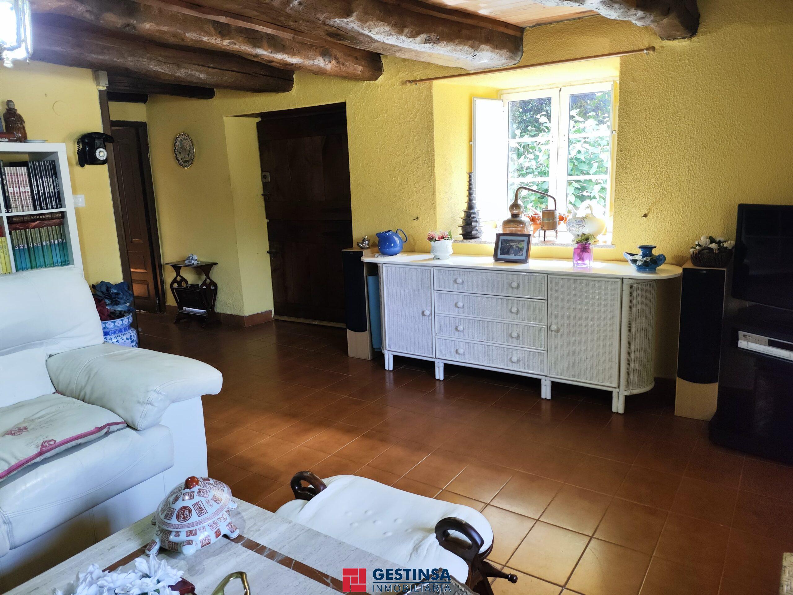 Dispone de un agradable salón o zona de estar, una amplísima cocina con zona de comedor con banco de madera, amplios techos con vigas originales a la vista. La casa tiene 2 dormitorios dobles en la planta baja y un baño completo. En la planta alta nos encontramos con una zona diáfana usada actualmente cómo dormitorio con capacidad para cinco camas.