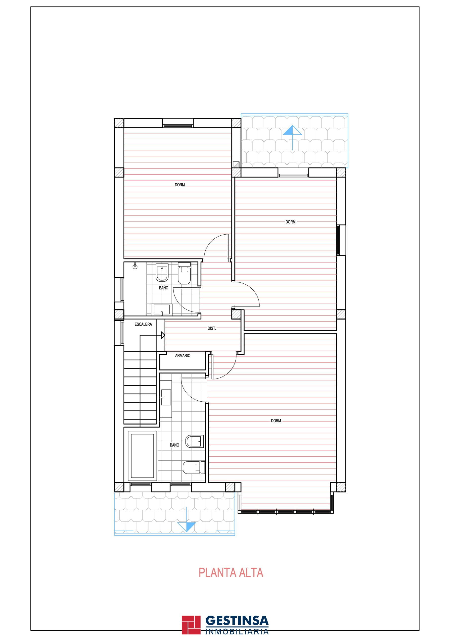 - Tarima flotante en zonas de paso, dormitorios y salón.